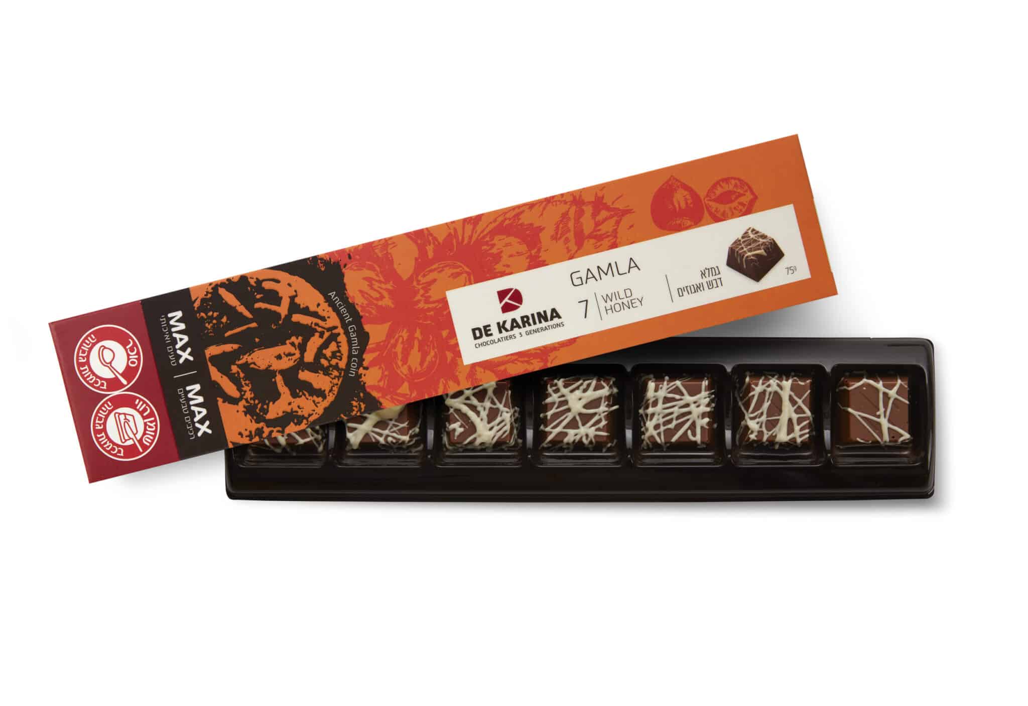 גמלא – 7 פרלינים משובחים בעבודת יד משוקולד חלב בטעם דבש ואגוזים