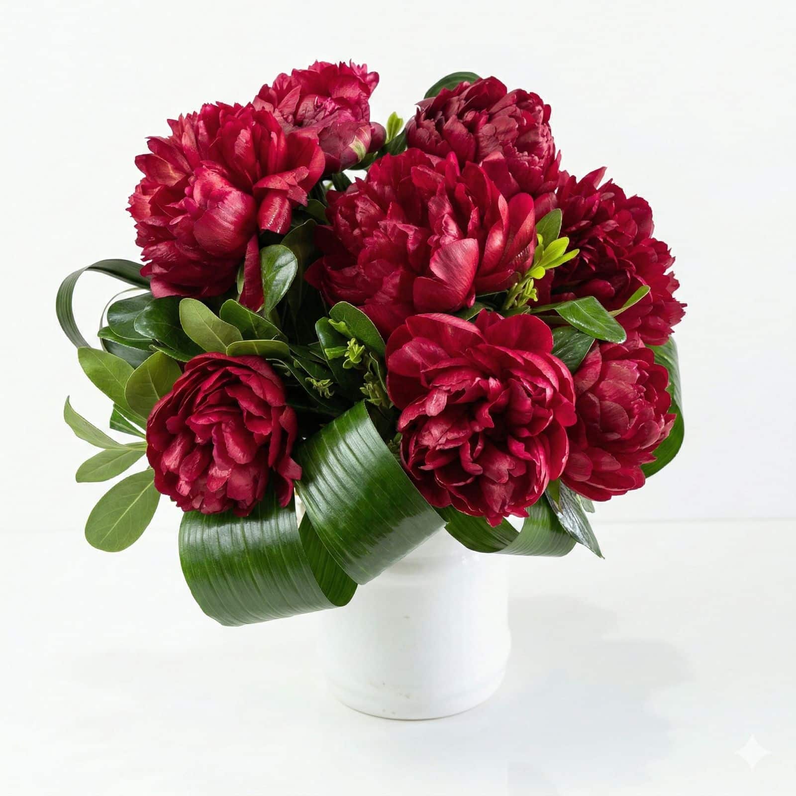 זר 9 פרחי אדמוניות (פיונים) בשילוב ענפי ירק מיוחדים