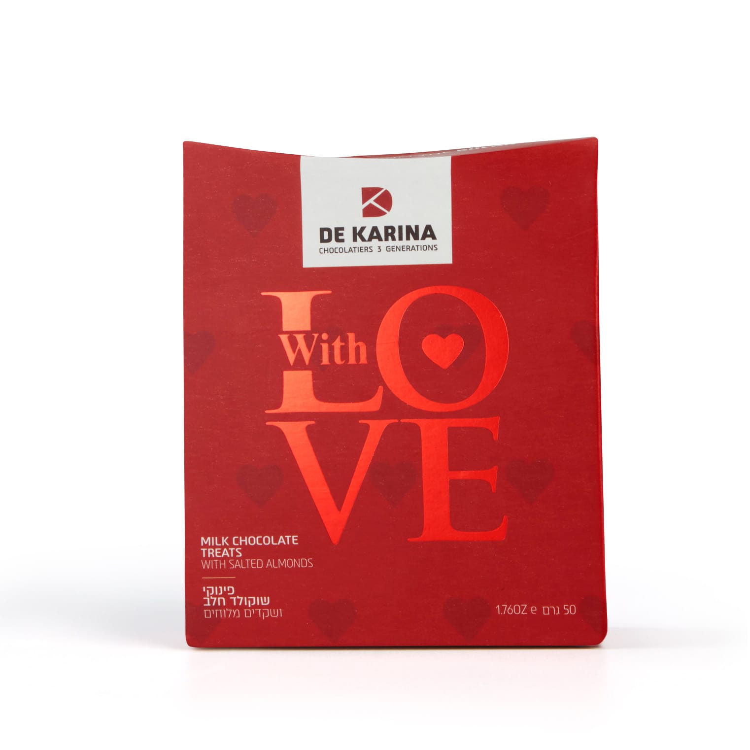 מארז פינוקי שוקולד חלב ושקדים מלוחים 50 גרם – דה קרינה